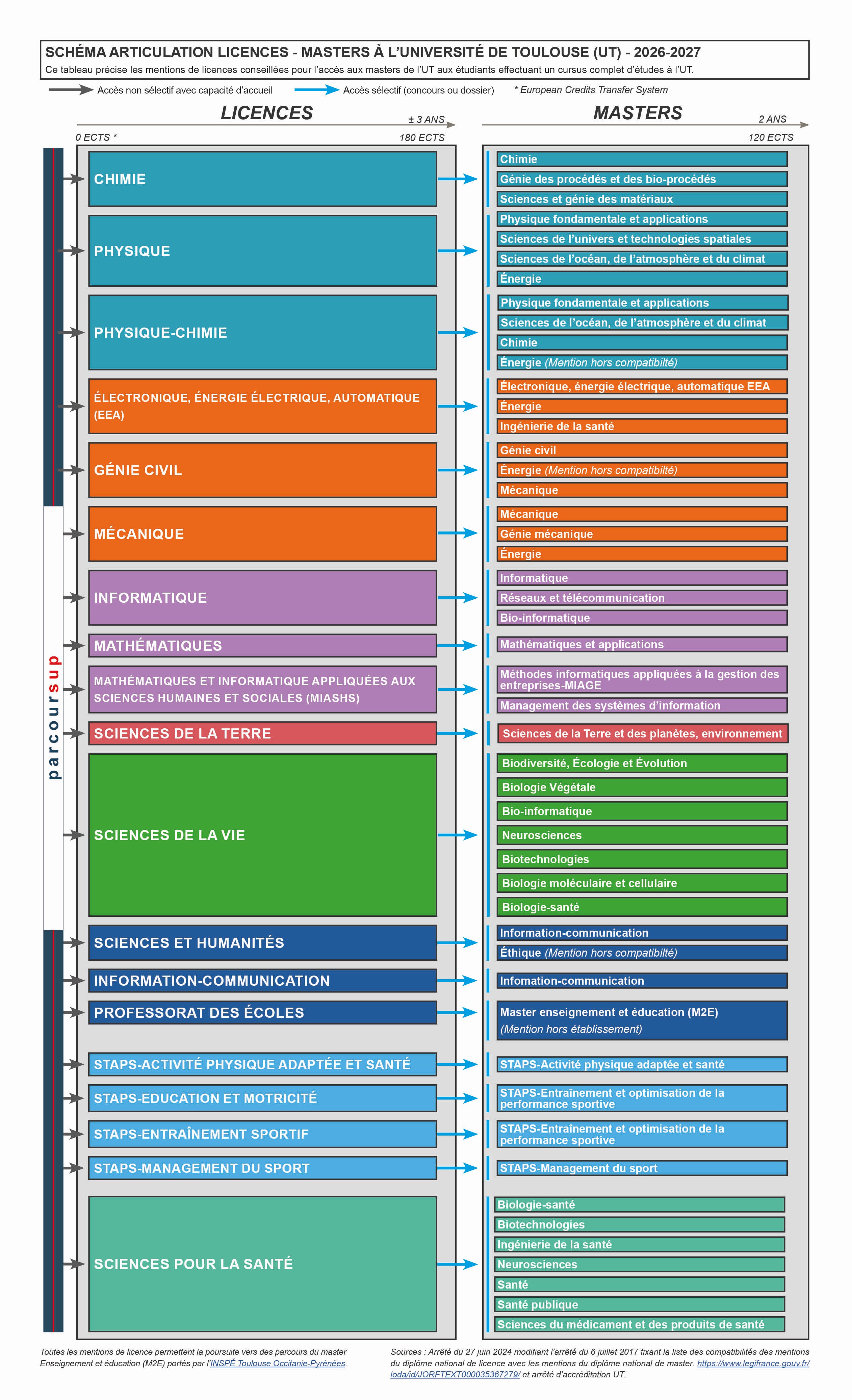 * La capacité d'accueil globale à la mention indique le nombre total de place à pourvoir pour la formation et l'ensemble de ses parcours et des étudiants (étudiants entrants, redoublants, publics de formation continue et étudiants étrangers via Etudes en France). Les capacités indiquées sur la plateforme Parcoursup (places offertes) ne prennent en compte que les étudiants entrants.